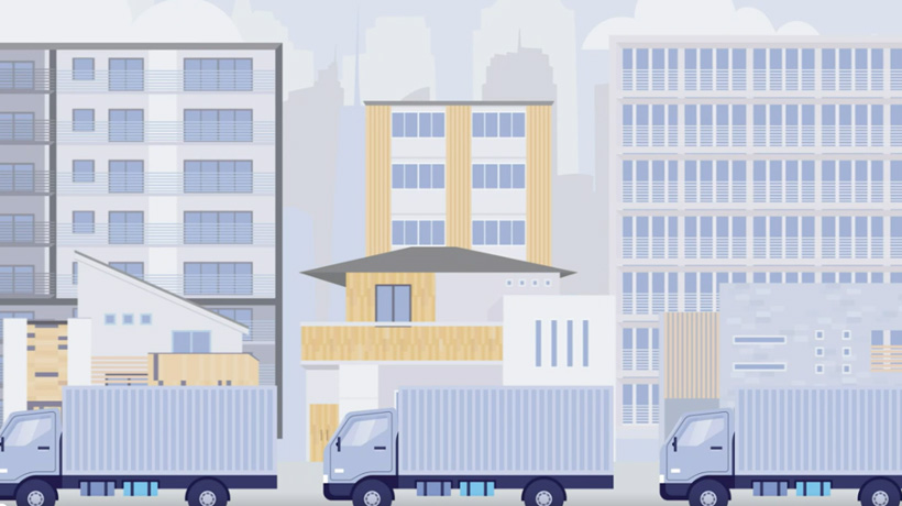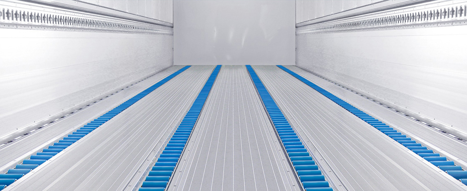 エアー作動方式を採用し、トラック荷台に設置したローラーコンベアをエアーホースでアップダウンさせます。トラック庫内の円滑なパレット搬送を実現し、荷役作業の効率化かつ省力化に貢献するシステムです。
