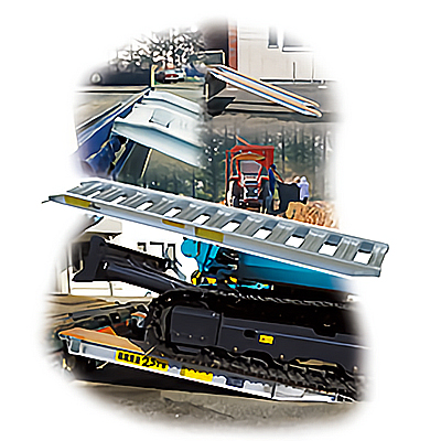 日軽アルミブリッジは日軽金グループが開発してきた高度の合金・加工・技術を最大限に活かした建設機械・農業機械積み下ろし用アルミ製ブリッジです。