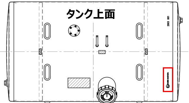 見え方⇒給油口を手前に見た際、タンク上面の右端に印字あり*連結用プラグ(コック) ⇒ 取扱(販売)はしていない
