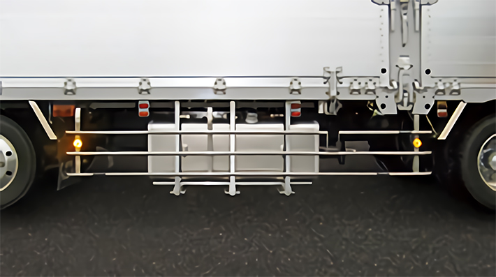 アルミ製のため鉄製やステンレス製と比べて軽量です。そのためトラックボディの軽量化に役立ちます。また強度に於いても十分な安全性を誇っております。