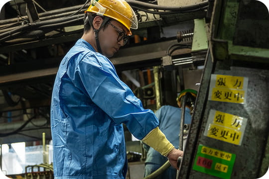 表面処理の一種である皮膜ラインの生産管理と、トラック関連部材の新規開発を担当しています。効率化や不良削減を追求する生産管理と、新製品の工程検討や試作を行う開発業務、どちらも担当できるのは、この部署のおもしろさの一つです。上司・先輩の「現場ファースト」の姿勢を受け継ぎ、現場に足を運ぶことを大事にしています。